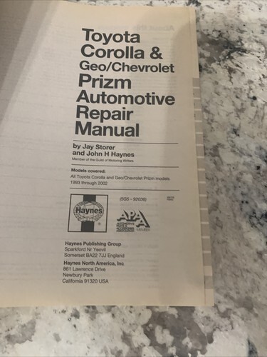 Haynes # 92036 Toyota Corolla & Geo Chevrolet Prizm Repair Manual 1993 thru 2002