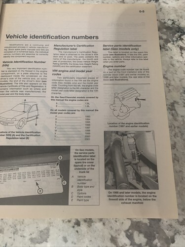 Haynes # 92036 Toyota Corolla Geo Chevrolet Prizm Repair Manual 1993 thru 2002.