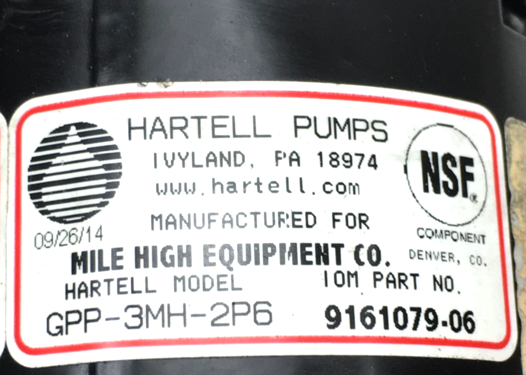HARTELL GPP-3MH-2P6 Ice Machine Pump 9161079-06 71218193 100233 used #MD507