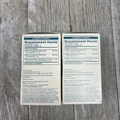 Lot of 2 -Himalaya Organic Ashwagandha Releases Stress/Boosts Energy 60 Caplets. Exp:09/27-04/28