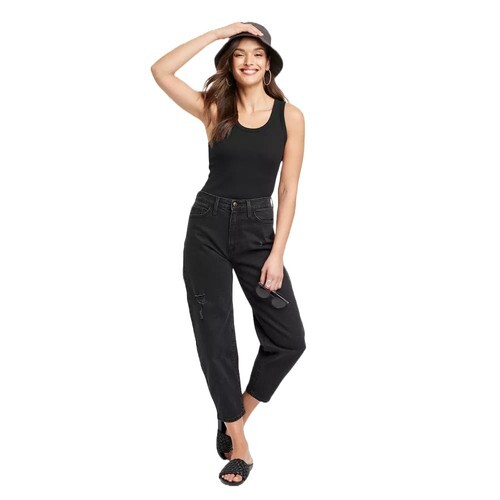 Universal Thread Women's Slim Fit Ribbed Shrunken Tank - (US, Alpha, Medium, Regular, Black)