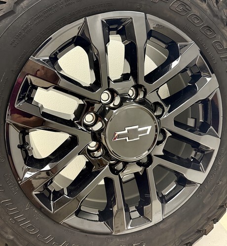 Set of 4 New Takeoff Chevy Silverado 2500 20" Black Midnight Edition Wheels With BFG A/T KO3 LT275/65R20 Tires