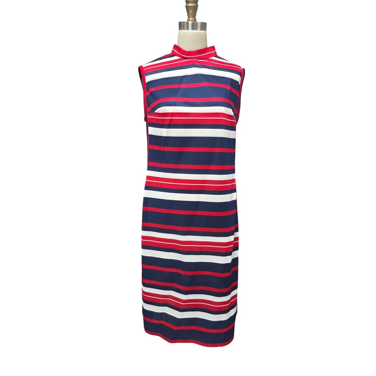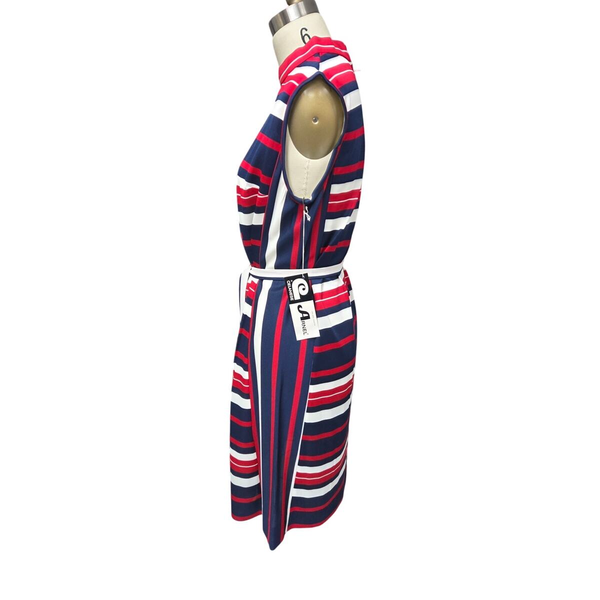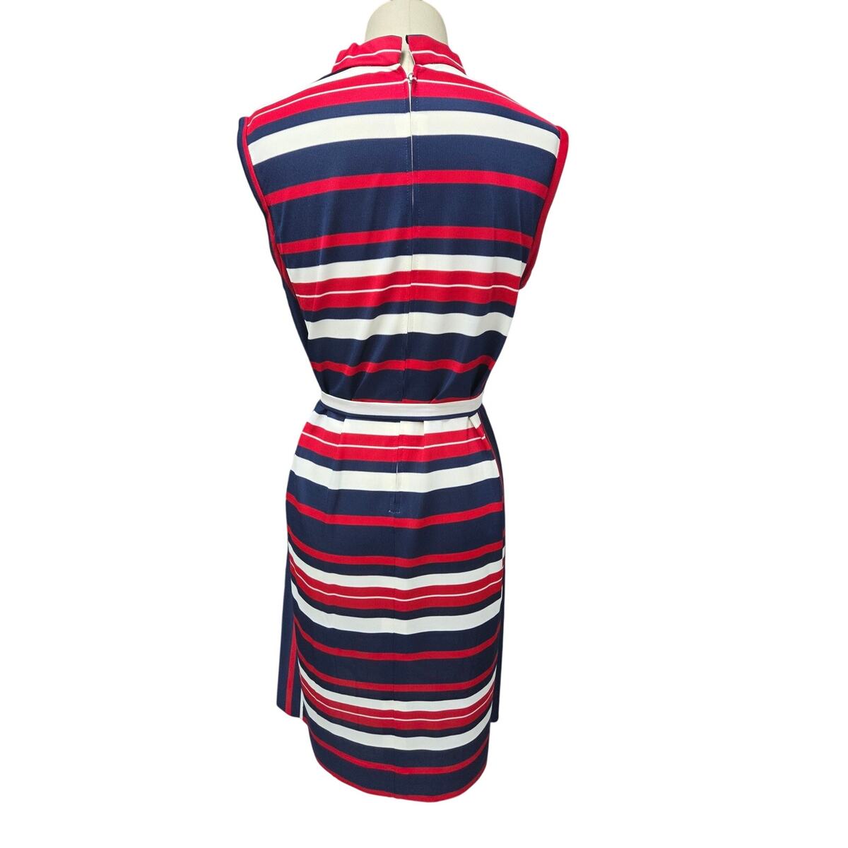 VTG 1960s Celanese Arnel Deadstock Red White Blue Mod Belted Dress Nautical M/L