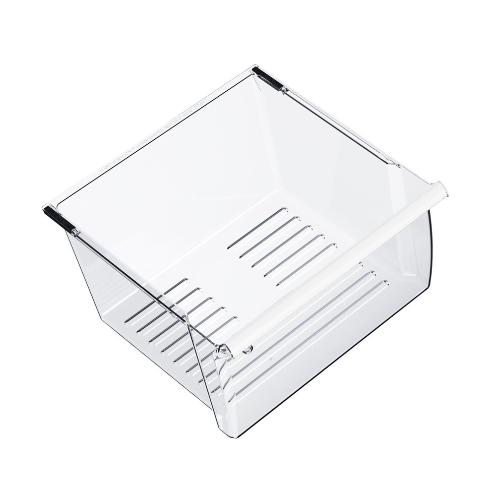 The crisper drawer is attached to the bottom of the crisper shelf. With regular use, it can break or crack due to misuse or accidents. When this happens, it can be challenging to move the drawer in and out, and the part should be replaced. Replacing the crisper pan is a straightforward process. Just slide the drawer into the old part's position, and it should snap right into place. This crisper pan is outfitted with a humidity control. Be sure to adjust it to your preferred setting after installing.
