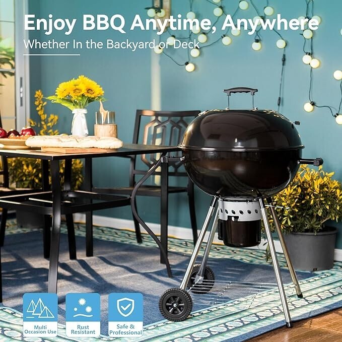 Built To Last: Our Kettle Charcoal BBQ Grill is made from sturdy steel. The grill part all processes by porcelain enamel include lid, grate, charcoal grill part and ash catcher, ensuring durability and longevity, won?t rust or peel. so you can keep the good times grilling for years to come.