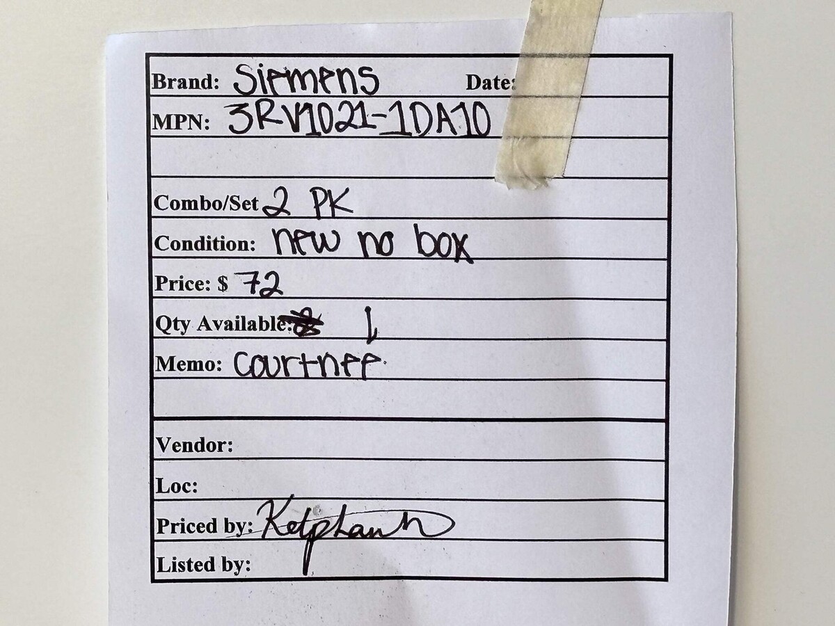 2PK Siemens 3RV1021-1DA10 SIRIUS S0 Motor Protection Circuit Breaker 2.2-3.2 A New No Box The Siemens 3RV1021?1DA10 is a Size S0 motor protection circuit breaker designed for three-phase motors, with an adjustable thermal overload range of 2.2-3.2 amps. It features Class 10 trip characteristic and a short-circuit release of 42 amps, providing combined overload and short-circuit protection. The unit is mounted via standard screw terminals and is suitable for use up to 690 V. It is rated for high interrupt capacity (up to 100 kA at 400 V) and designed for DIN-rail or panel mounting. Note that this product is now marked as discontinued; the preferred successor is the SIRIUS 3RV2 series. Listed by: Maksim (Sales Team) ?Self-discipline is doing what?s right instead of doing what you feel like doing. That?s the meaning of self-disciple.?~ Eliud Kipchoge (A positive moment brought to you by Help Resale) About Us Welcome to Help Resale, your go-to consignment shop where value meets quality. At Help Resale, we're dedicated to providing you with an exceptional shopping experience, whether you're looking to find the best deals or consign your items. Need to buy a product, but don't see it in our store? Please feel free to reach out to us and we will help you find it! Help Resale 7200 Fair Oaks Blvd Suite 120 Carmichael CA 95608 Business Hours: Monday-Friday: 9:00 am to 5:00 pm (PST) All product and company names are trademarks TM or registered trademarks of their respective holders. Use of them does not imply any affiliation with or endorsement by them.