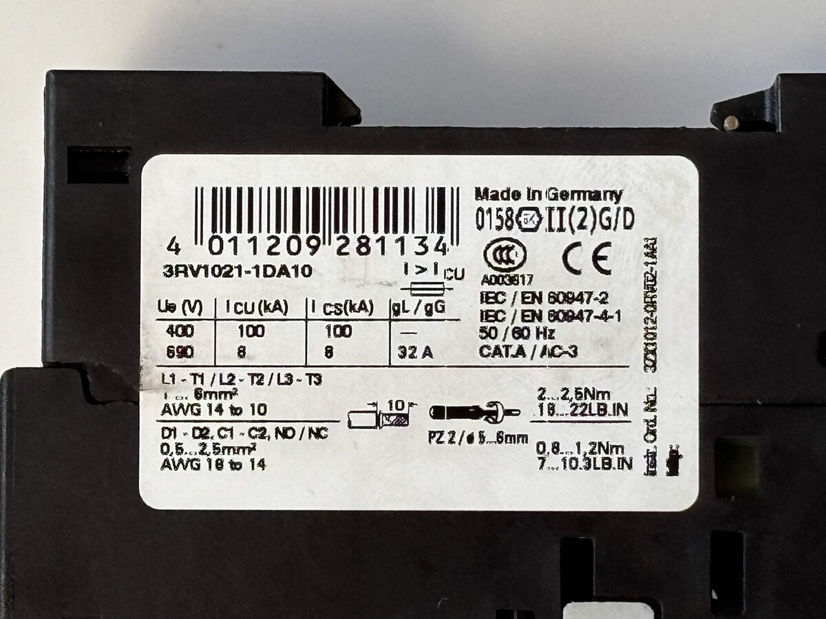 2PK Siemens 3RV1021-1DA10 SIRIUS S0 Motor Protection Circuit Breaker 2.2-3.2 A