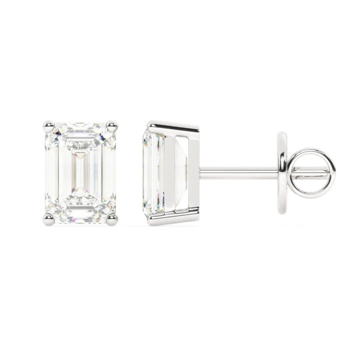Lab Grown 2 Carat Total D Color VVS2 Clarity IGI CERTIFIED Emerald Cut Earrings