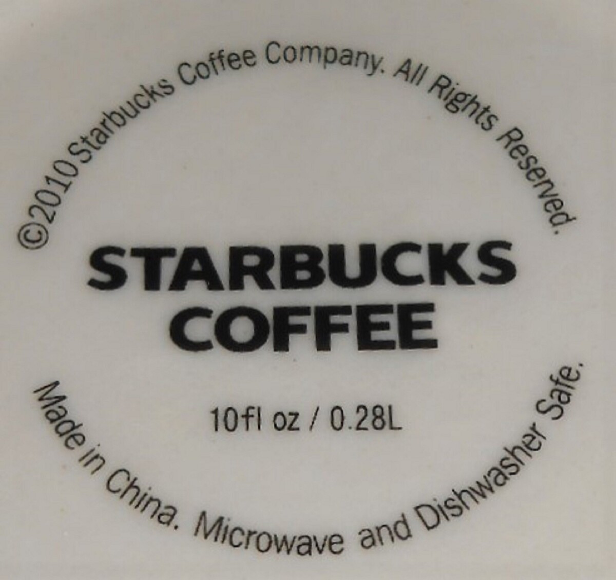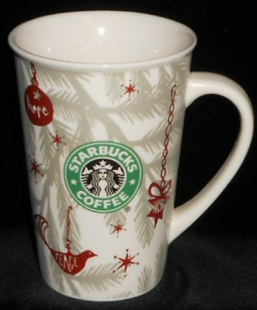 This is a 4 3/4" Tall 10 ounce Handled Mug with a Holiday Motif from Starbucks Coffee and dated 2010. It is in good pre-owned condition with no chips or cracks.