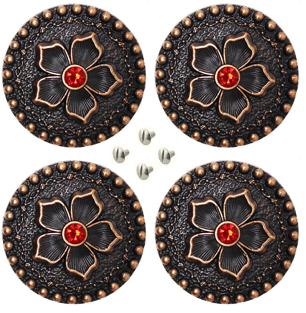 Concho Set of 4 Conchos Western Saddle Tack 1-1/4" Engraved Copper Flower 401559