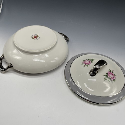 Royal Jackson Casserole Covered Dish Bowl Vogue Ceramic Rose Silver