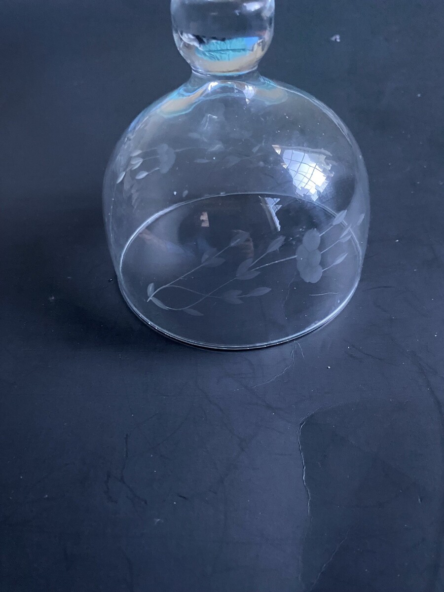 Antique vintage etched Crystal butter cover. Dome shape. Circumference 4 1/2? x 4 1/2? tall