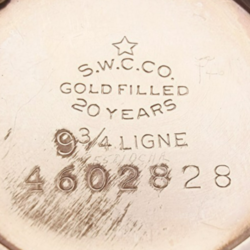 This product is an antique yellow gold filled SWC CO women's mechanical wristwatch with 15 jewels. The classic style watch features a manual movement and a vintage design, making it a unique and timeless piece for any watch enthusiast or collector. The brand SWC CO adds to its historical charm and value, making it a valuable addition to any jewelry or watch collection.