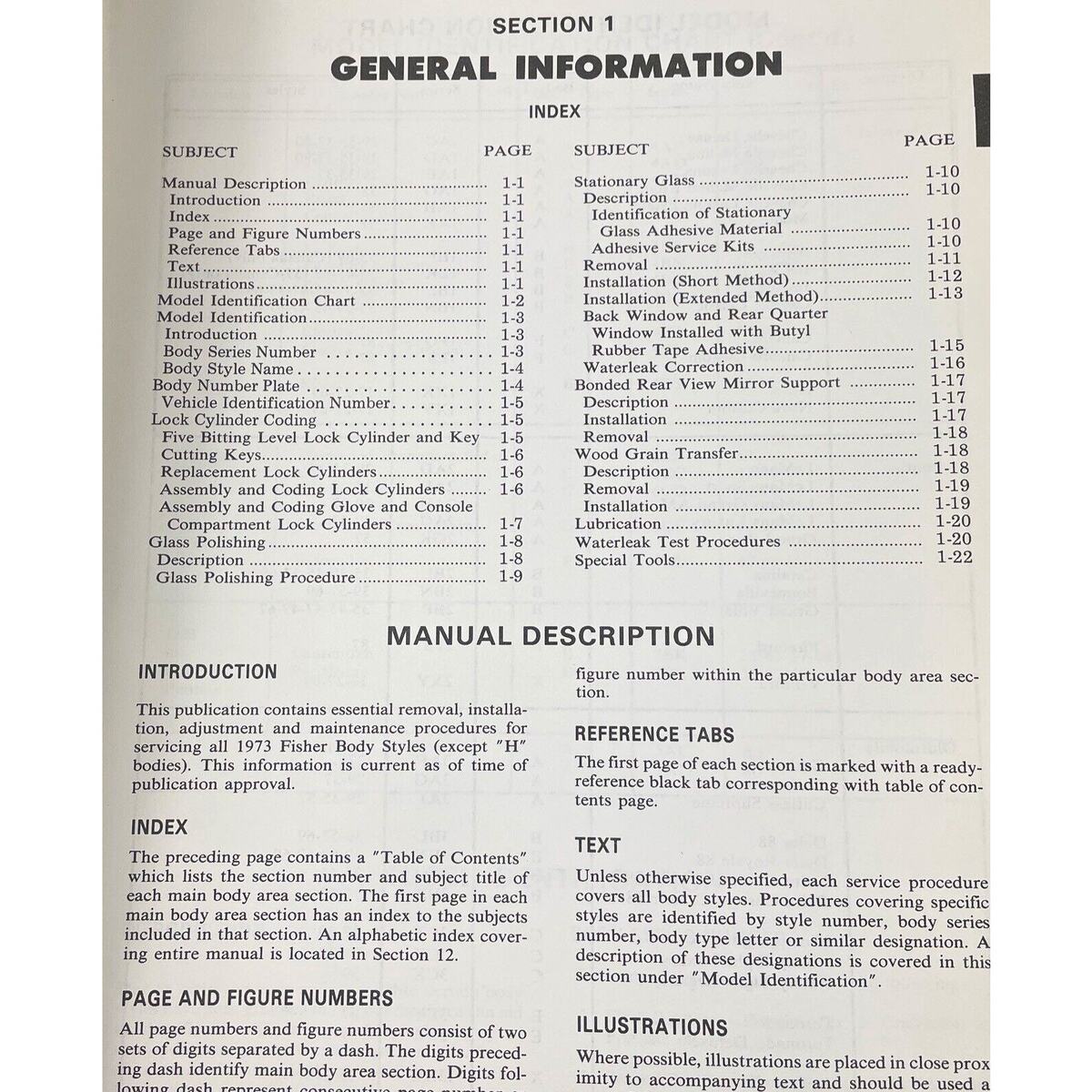 Vintage 1973 Fisher Body Service Manual All Body Types Except H Body Original
