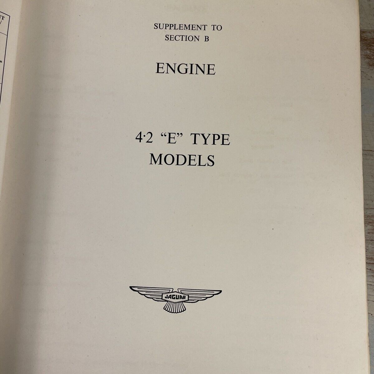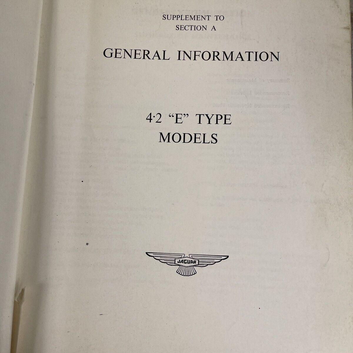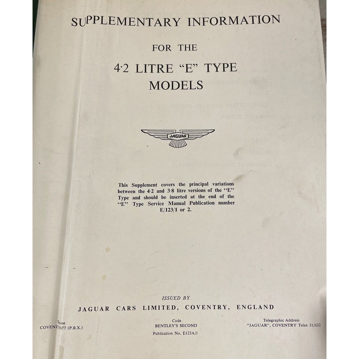 #1139. Original Jaguar 3.8 E-Type Supplementary Info Manual for 4.2 Grand Touring Model. This is to add to the 3.8 E Type Grand Touring Models Service Manual.