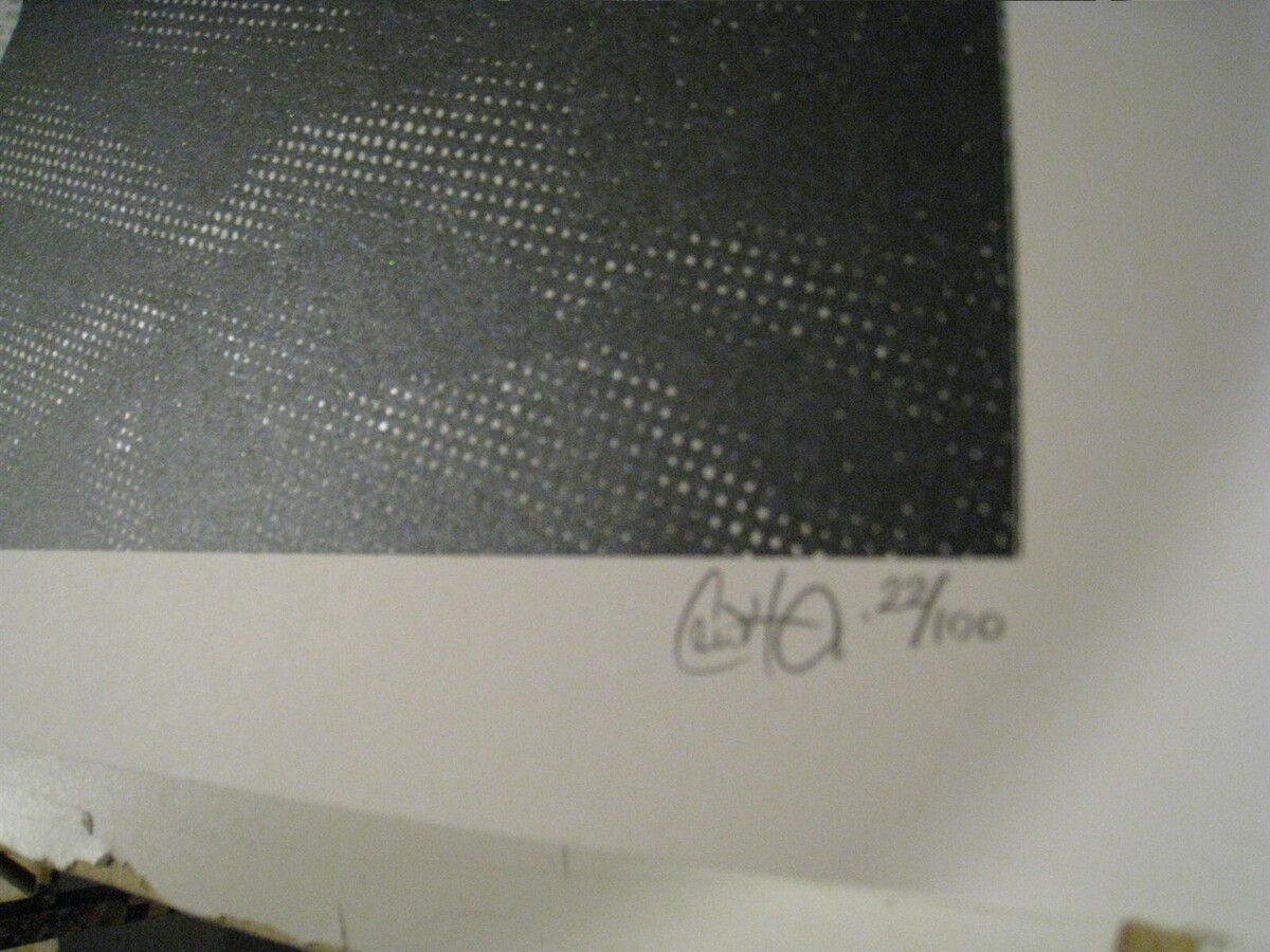 Cette affiche mesure environ 24 pouces par 24 pouces environ. C'est en parfait etat. L'affiche est signee et numerotee par l'artiste visuel Clint Wilson. C'est le numero 65 de 100.