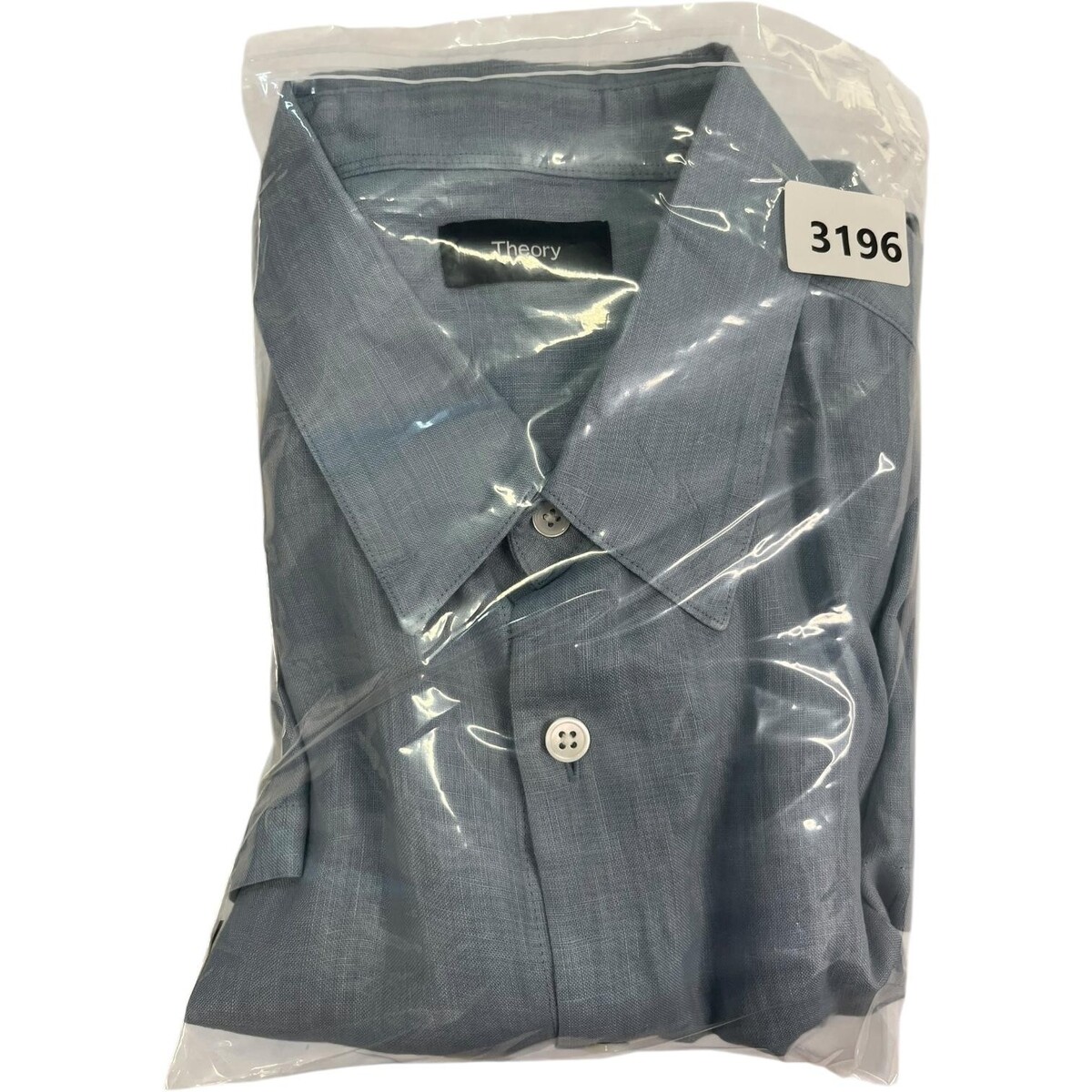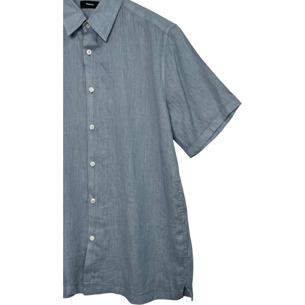 Theory Shirt Mens Small Blue Linen Irving Short Sleeve