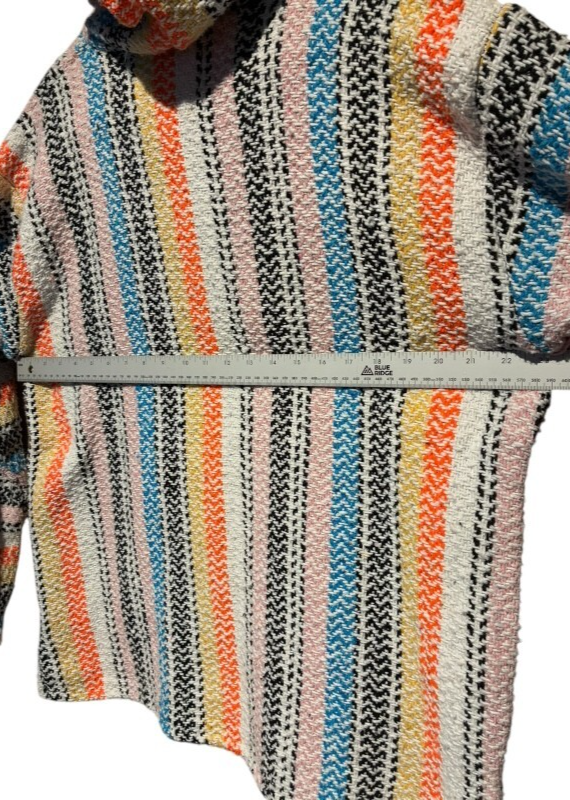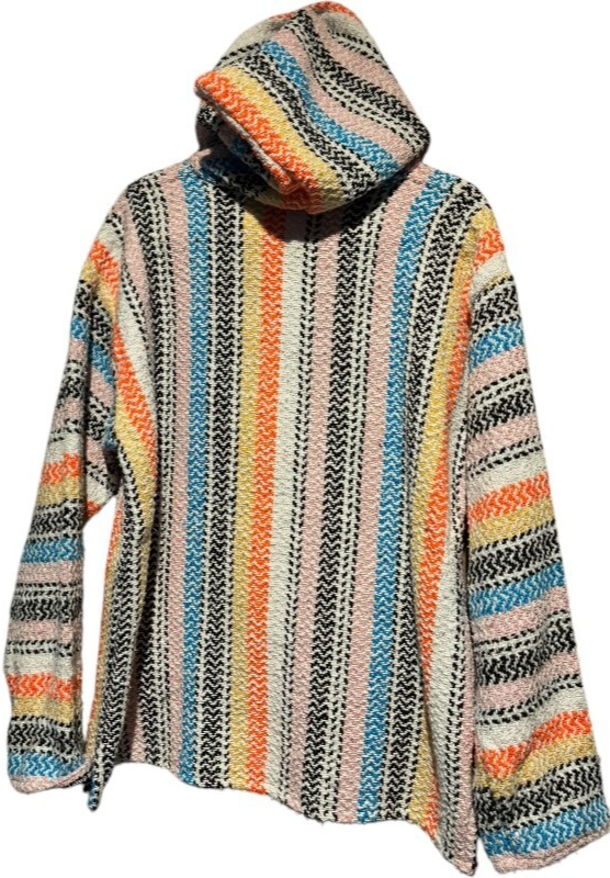 Earth Ragz Baja Surfer Woven Striped BOHO Mexican Hoodie Pullover size L