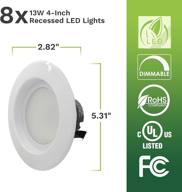 8 Pack 4-Inch 13 Watt 90 CRI Dimmable LED and 50 similar items