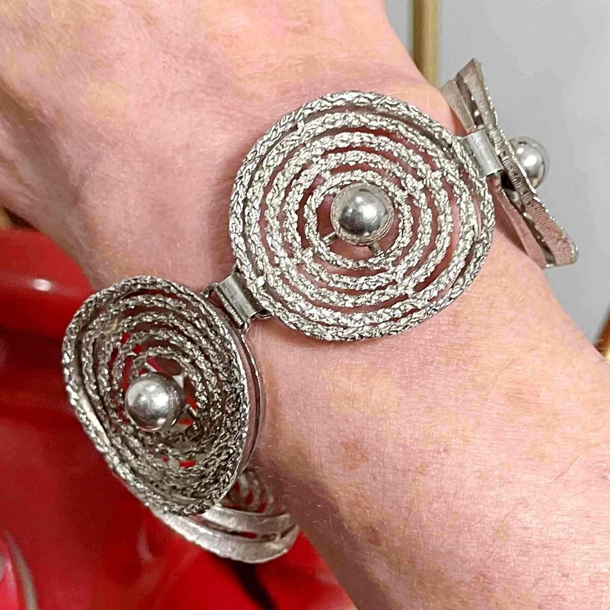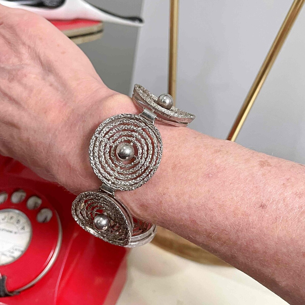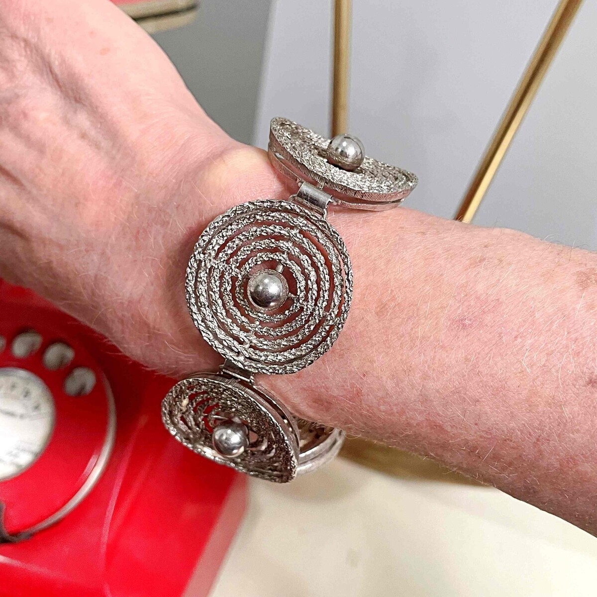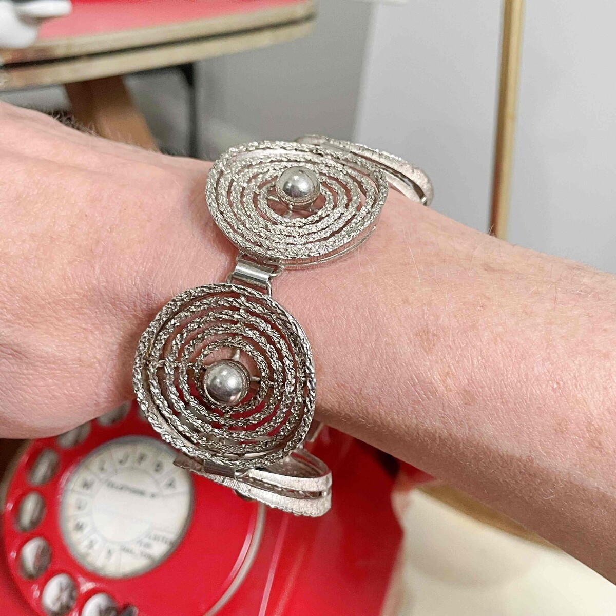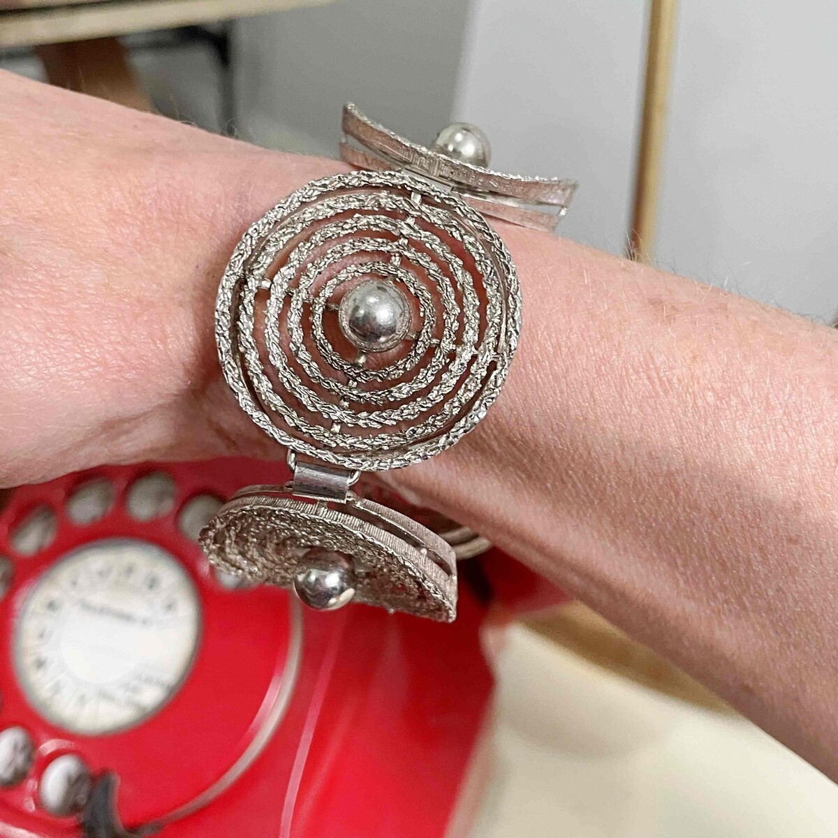 1970s Vintage Concentric Circle Chunky Silver Bracelet Bangle Unisex Bangle Gift