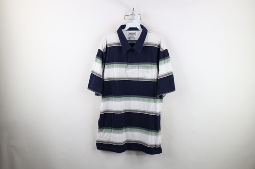 Vintage 90s Streetwear Mens 2XL Faded Striped Color Block Knit Golf Polo Shirt