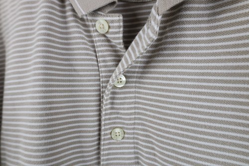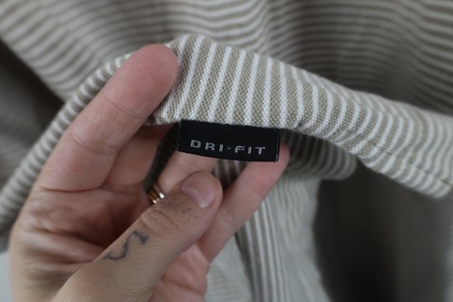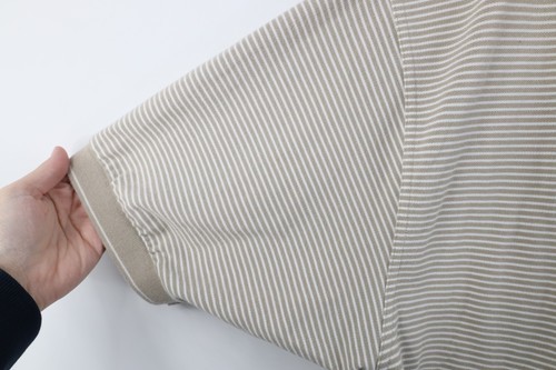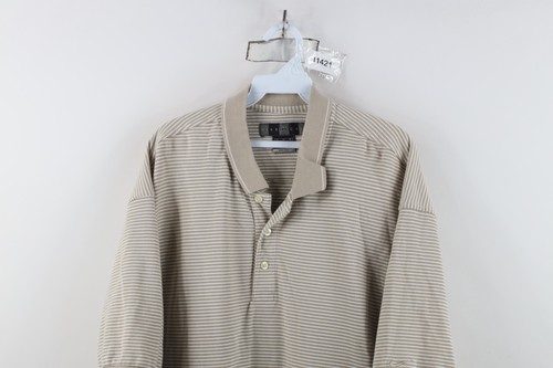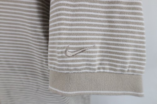 Vintage Nike Golf Mens XL Faded Travis Scott Mini Swoosh Striped Knit Polo Beige