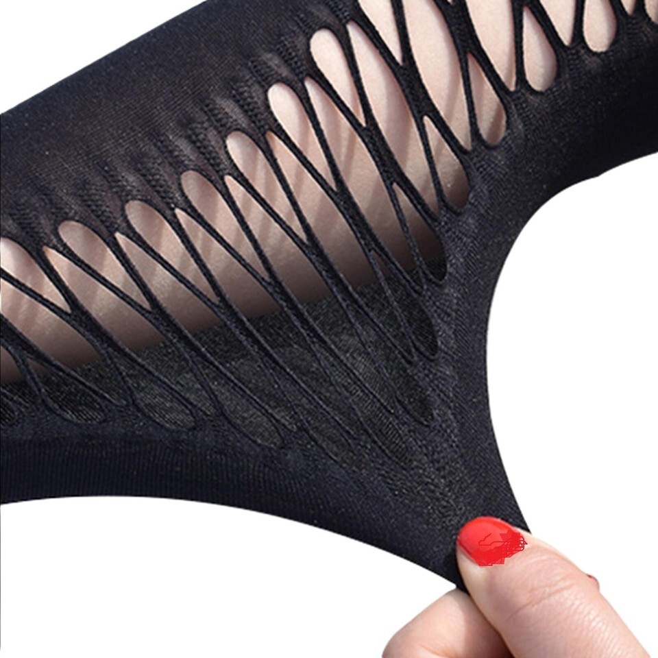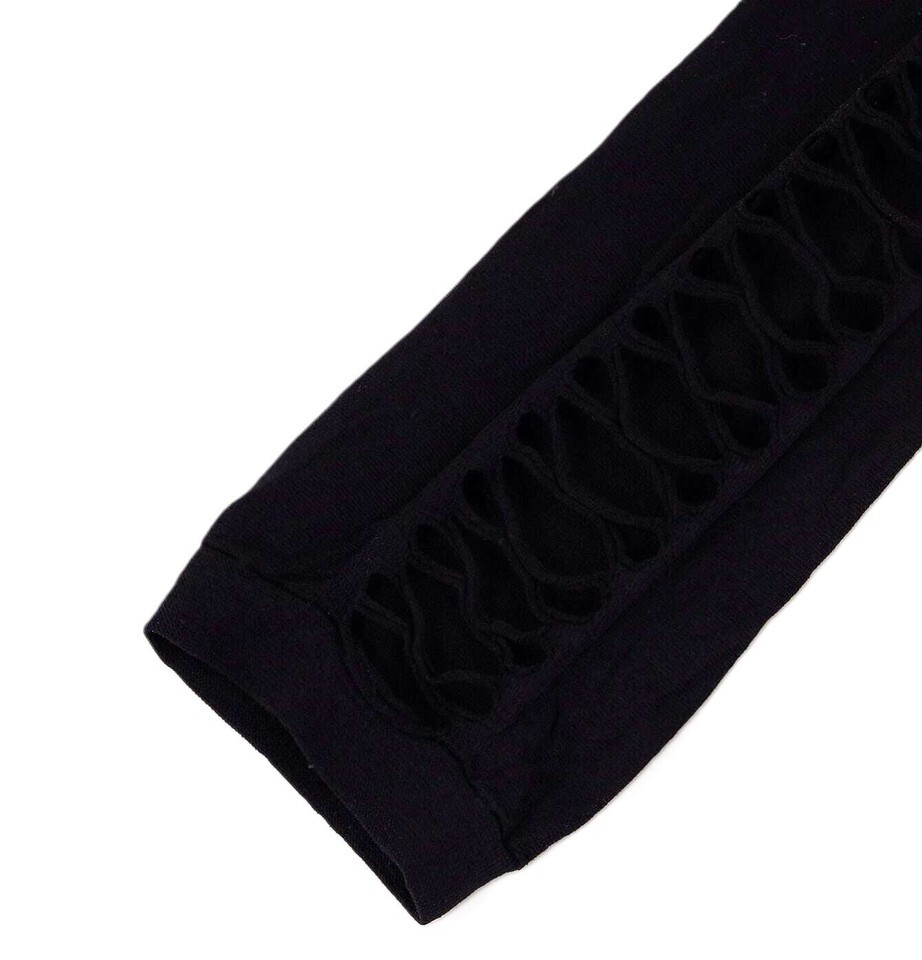 Gothic Black Faux (Fake) Lace-up Ripped-Look Hollow-Out Long