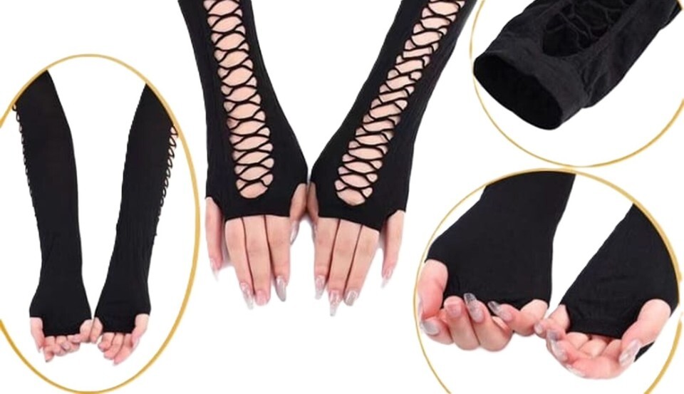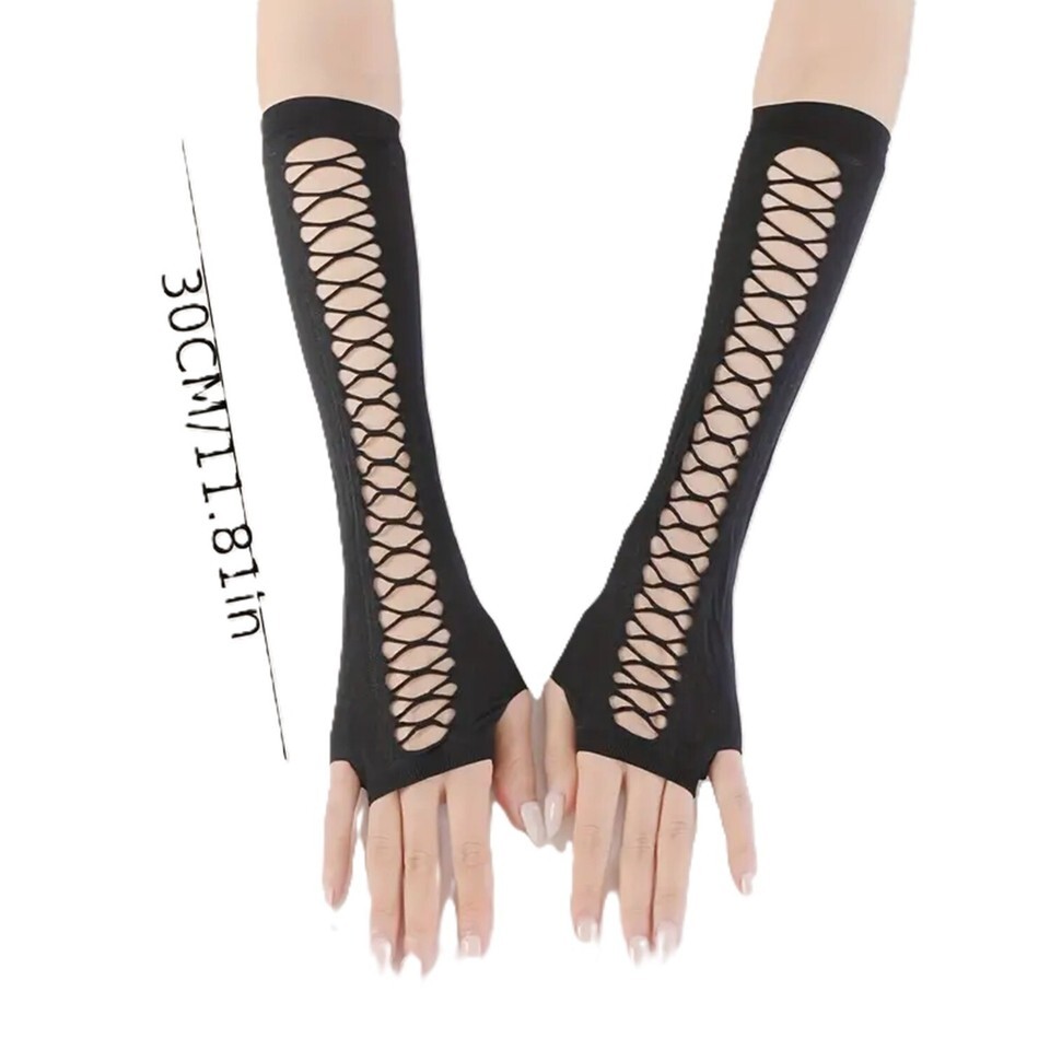 Gothic Black HOLLOW SLASHED SLEEVE LONG FINGERLESS GLOVES Punk Steampunk Cosplay