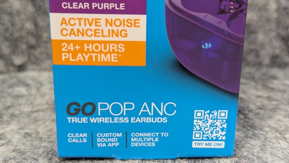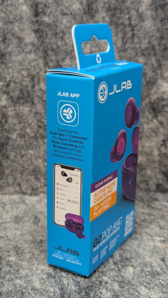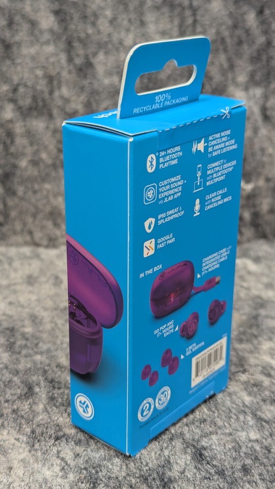 JLab Go Pop ANC True Wireless Bluetooth Earbuds Transparent/Clear Purple New