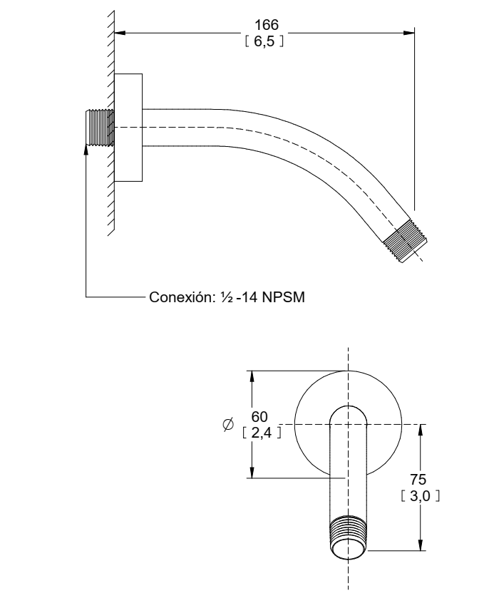 Helvex Shower Arm and Round Flange Satin Nickel Finish, Solid Brass UTR-012-SN