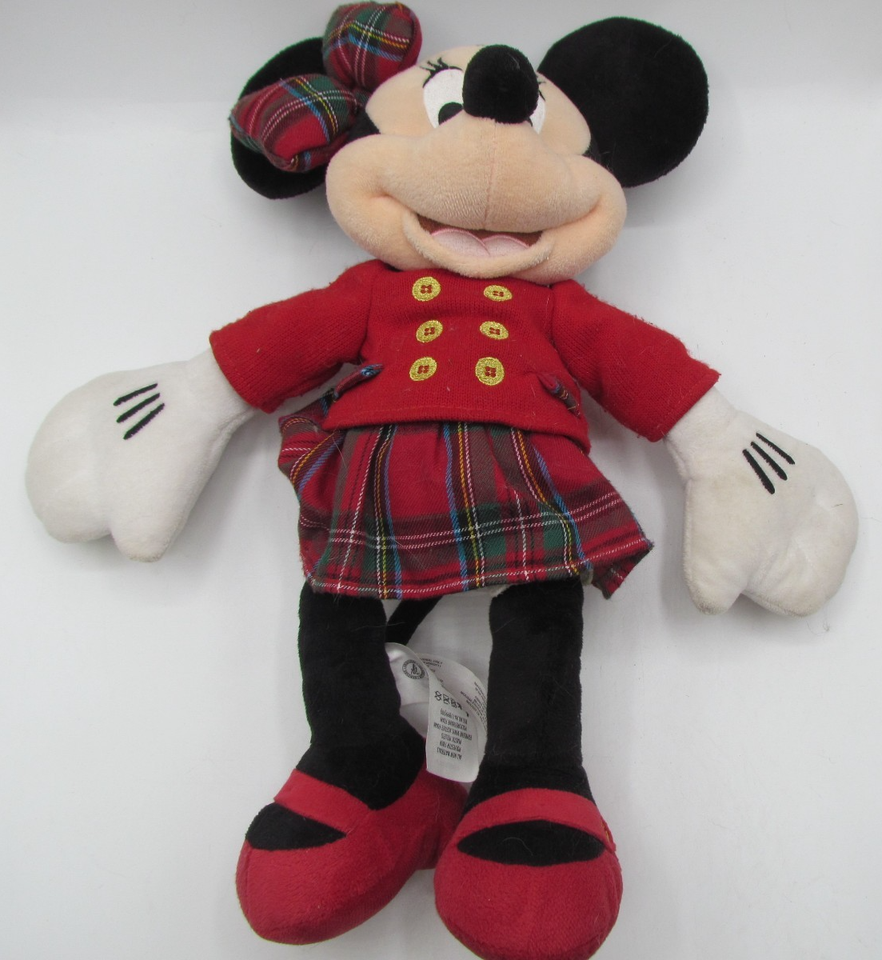 The Disney Store Minnie Mouse Christmas Plaid Plush from 2016 is a collectible plush toy featuring the iconic character Minnie Mouse. Made in Vietnam, this plush is a part of the Disney franchise and showcases the brand's signature charm and quality. Perfect for fans of Disney and collectors of contemporary Disneyana, this plush is a festive and adorable addition to any collection or gift basket.