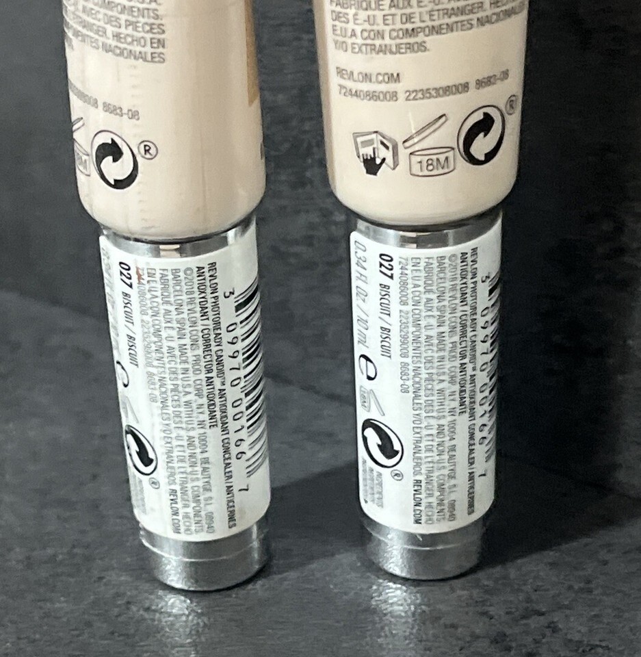 2 Revlon Photoready Candid Antioxidant Concealer - 027 Biscuit - 0.34 Oz Sealed.