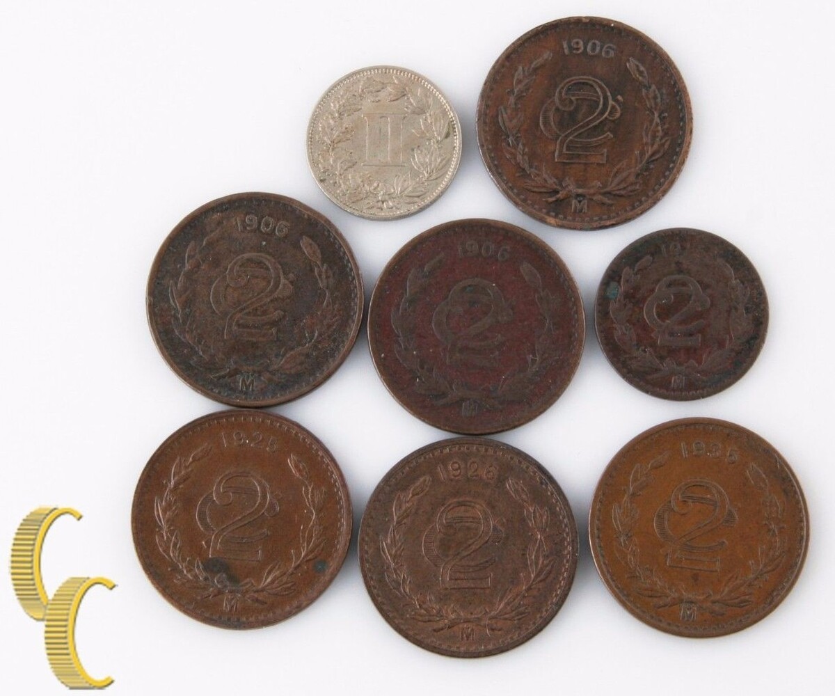 1906-1935 Mexico 2 Centavos Lot ( F-Au ,7 Pièces) + Bonus 1883 Pièces ! 2c