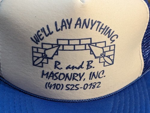 In vendita e un usato We'll Lay Anything RB Masonry Inc MD Blue Trucker Rope Snap Back Hat Cap.