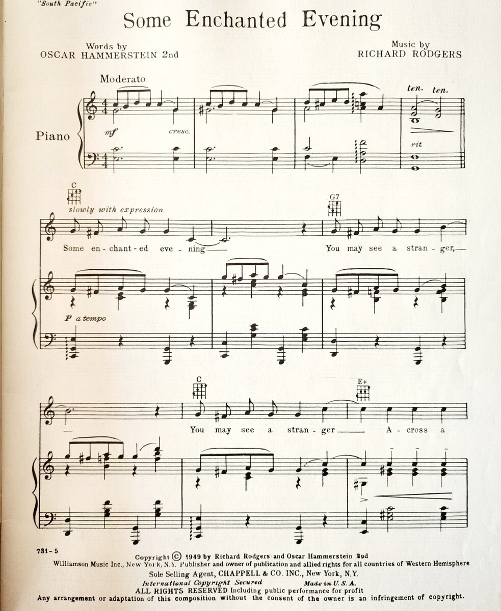 1949 South Pacific Musical Song Book 1st Edition Rodgers & Hammerstein C6A