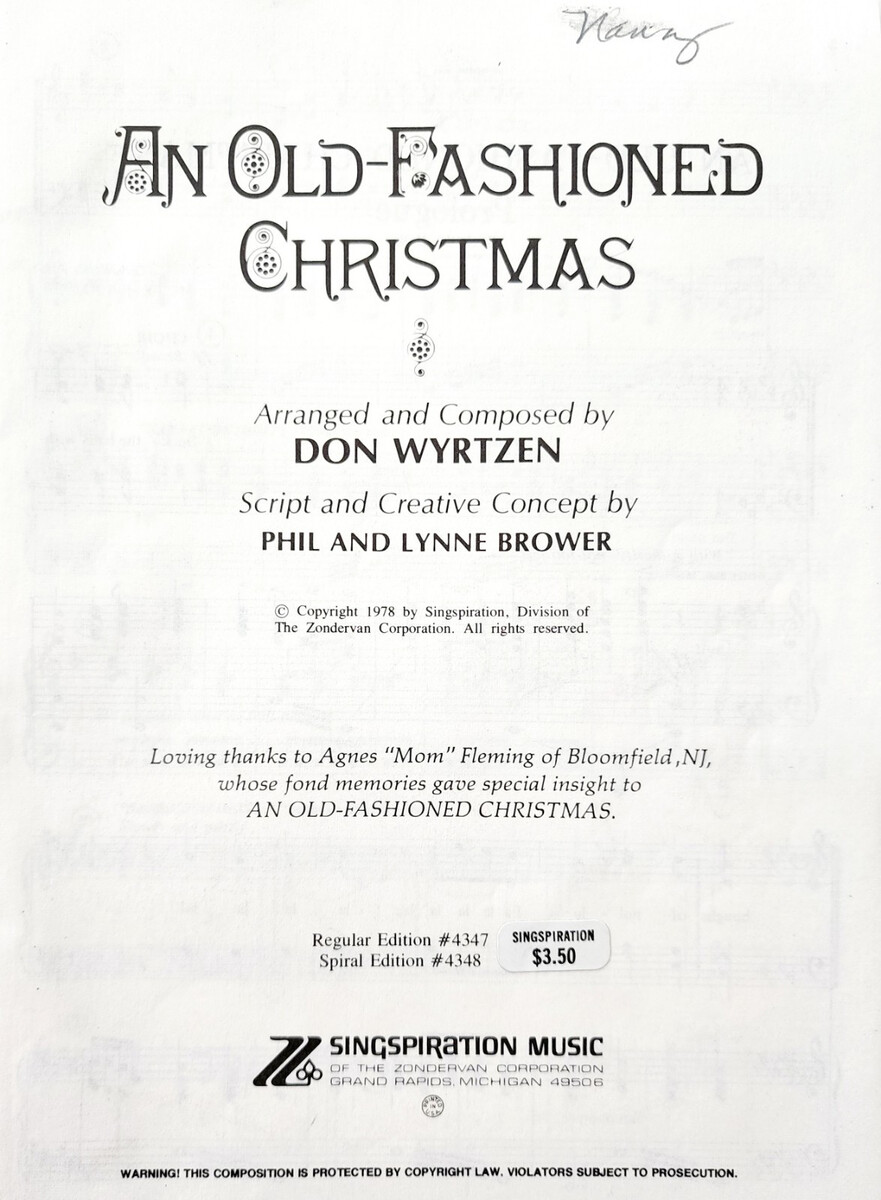 1978 An Old Fashioned Christmas Song Book Musical Don Wyrtzen Browers 2 LGDWA