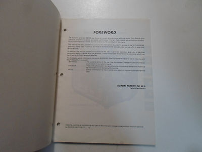 Service manual has wear on the front cover towards the edges on the left side. Manual is damaged on the back cover. Over all the manual within is in good legible condition. Informative with illustrations, step by step instructions, assembly/dis-assembly, exploded illustrations/diagrams/troubleshooting, great manual to have when owning a SUZUKI GENERATOR. This manual will save you money in repairs/service. If you are not satisfied with your shopping Experience, please contact us to get a solution before you decide to leave a NEUTRAL or a NEGATIVE Feedback, We will do our best to solve any problems for you as soon as possible. We will provide you with the BEST POSSIBLE service because the POSITIVE Feedback and FIVE Stars are what we are striving for. Please email me through "My Messages" or