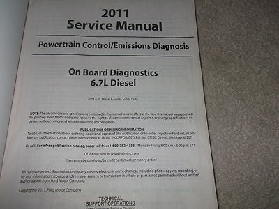 NEW 2011 Ford 6.7 LITER DIESEL POWERTRAIN CONTROL EMISSION DIAGNOSIS Service Manual This manual is published by Ford, and are the same manuals the Ford Mechanics/Technicians use. We will leave POSITIVE Feedback after we receive your payment. Please do not forget to give us POSITIVE Feedback and FIVE Stars on all of the Detailed Seller Ratings! If you are not satisfied with your shopping Experience, please contact us to get a solution before you decide to leave a NEUTRAL or a NEGATIVE Feedback, We will do our best to solve any problems for you as soon as possible. We will provide you with the BEST POSSIBLE service because the POSITIVE Feedback and FIVE Stars are what we are striving for. Please email me through "My Messages" or "Ask Seller Questions" if you have any question about our li
