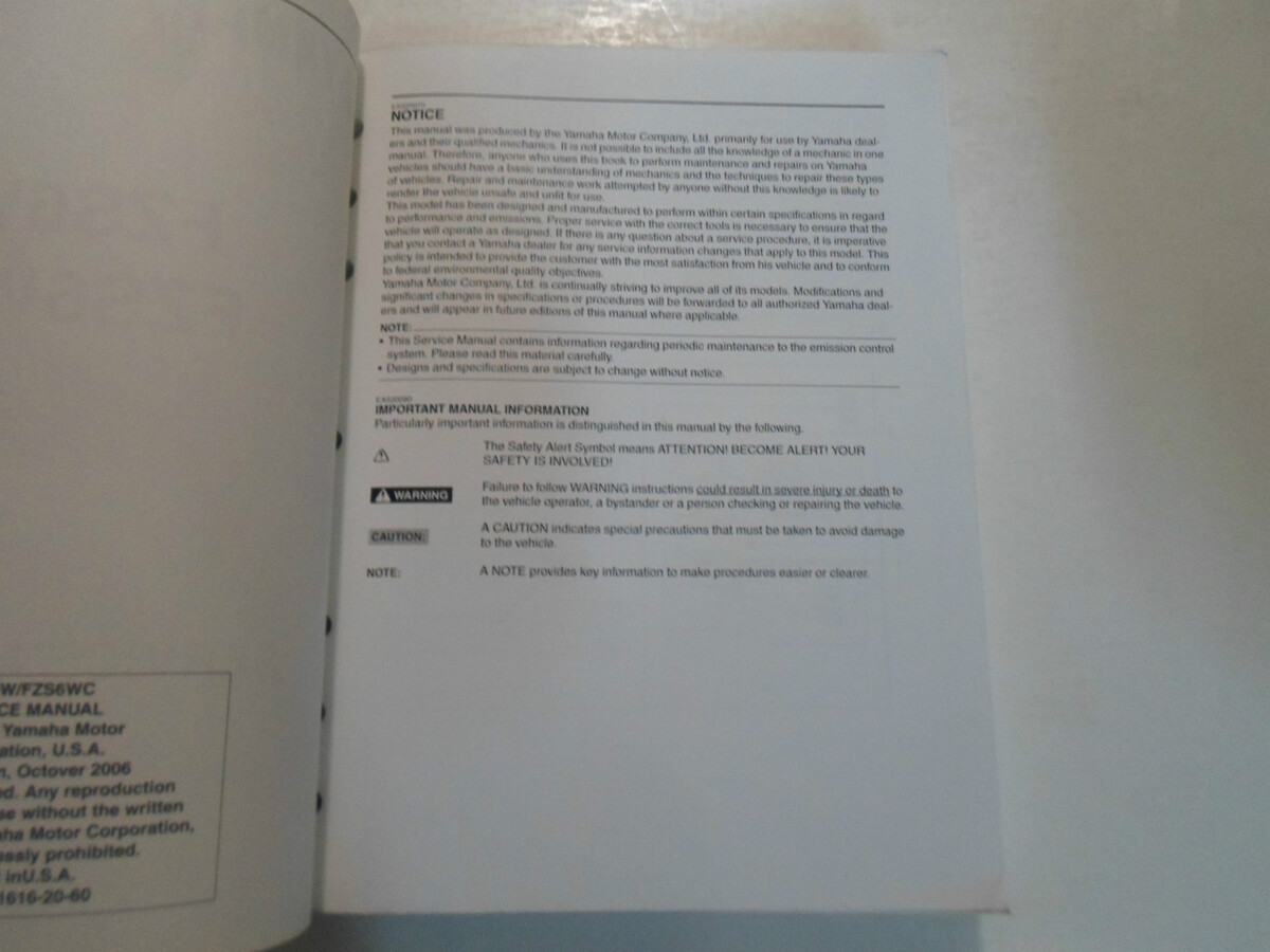 2006 2007 Yamaha FZS6W FZS6WC Service Shop Repair Manual OEM LIT-11616-20-60