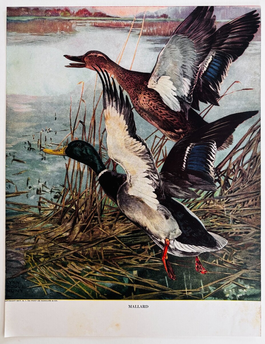 1917 Mallard Ducks Plate Print Game Bird Art Lynn Bogue Hunt Vintage DWUU5