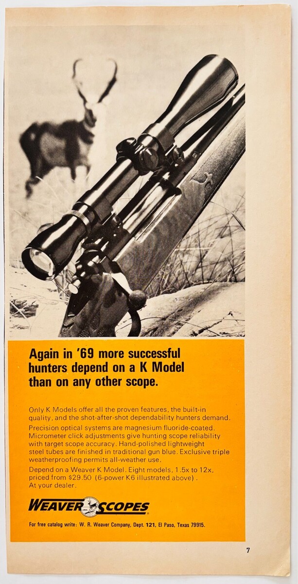 1969 Weaver Scopes K Model Advertisement and 45 similar items