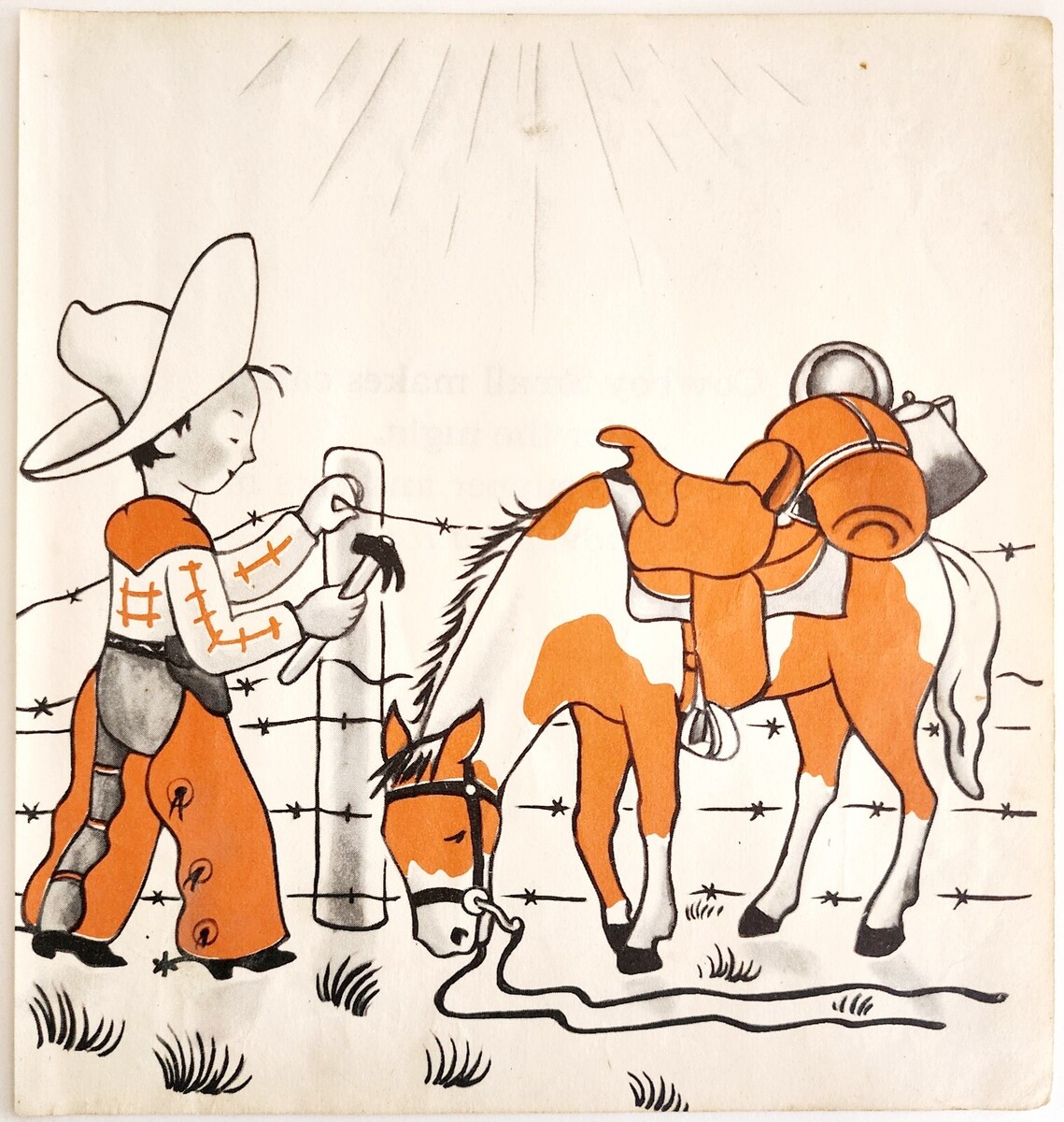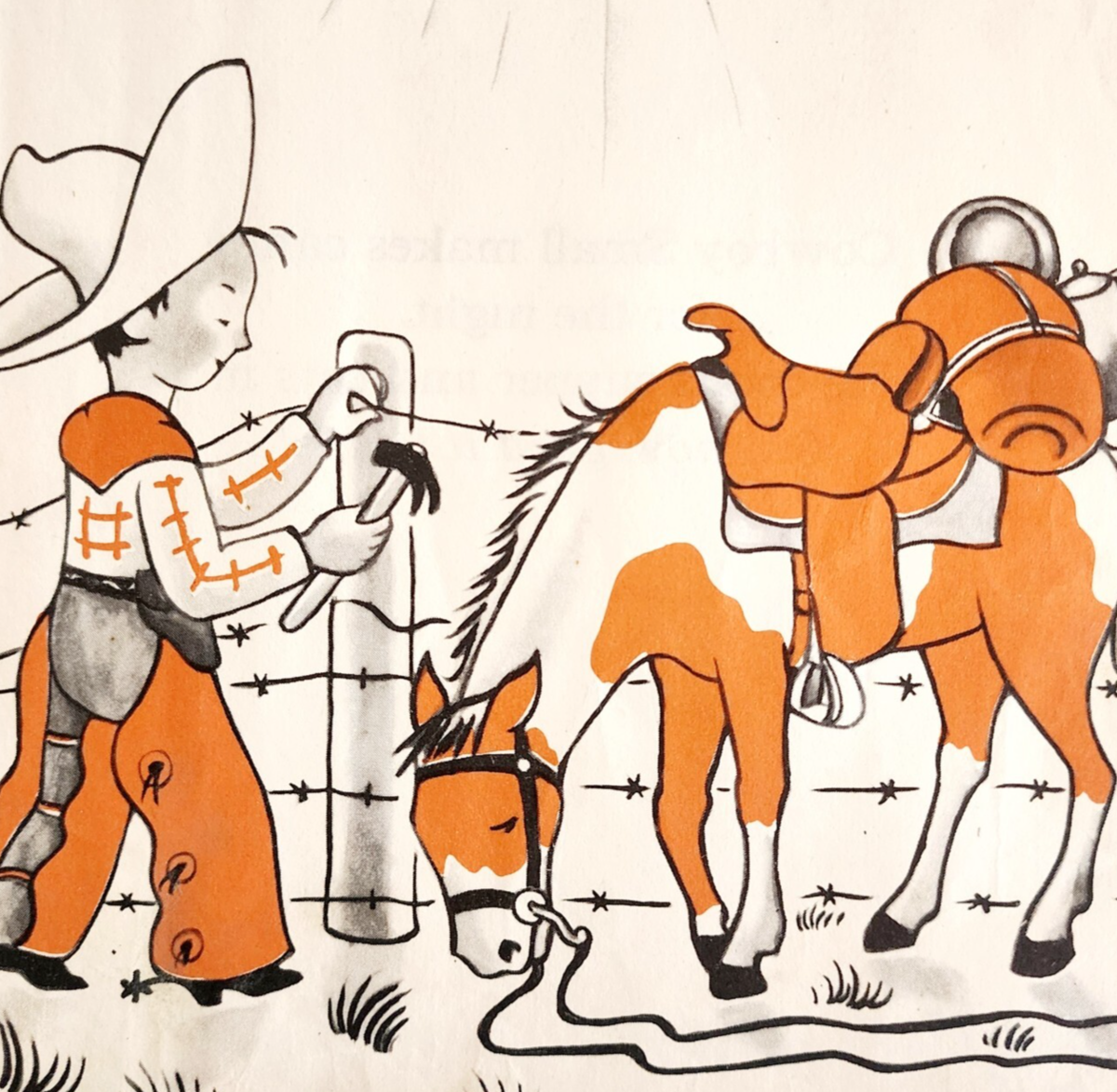 1955 Cowboy Small Horse Fence Book Illustration Plate Print Lenski Vintage DWH5B