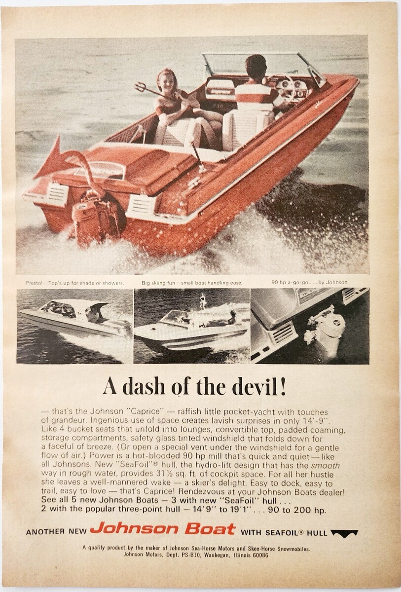 1966 Johnson Caprice Boat Advertisement Vintage Boating Outboard Fishing DWF28