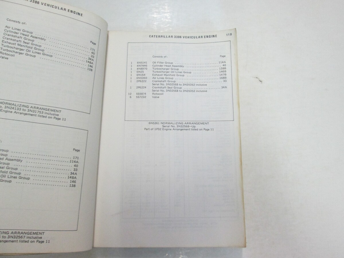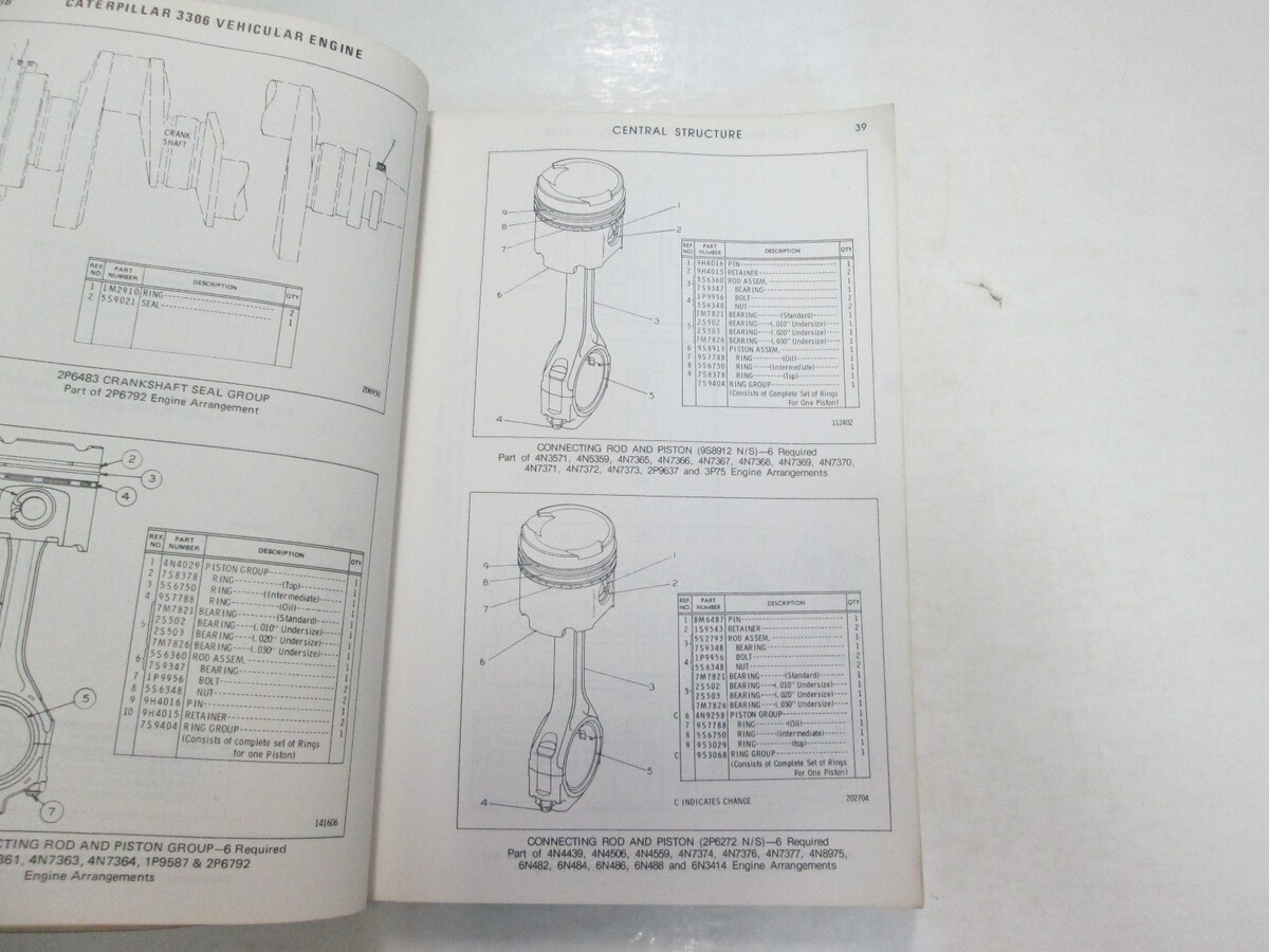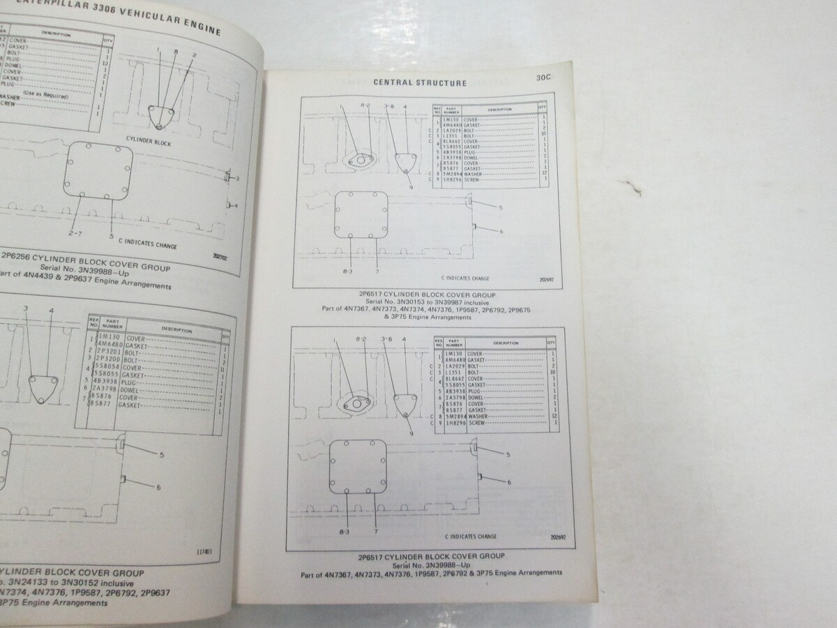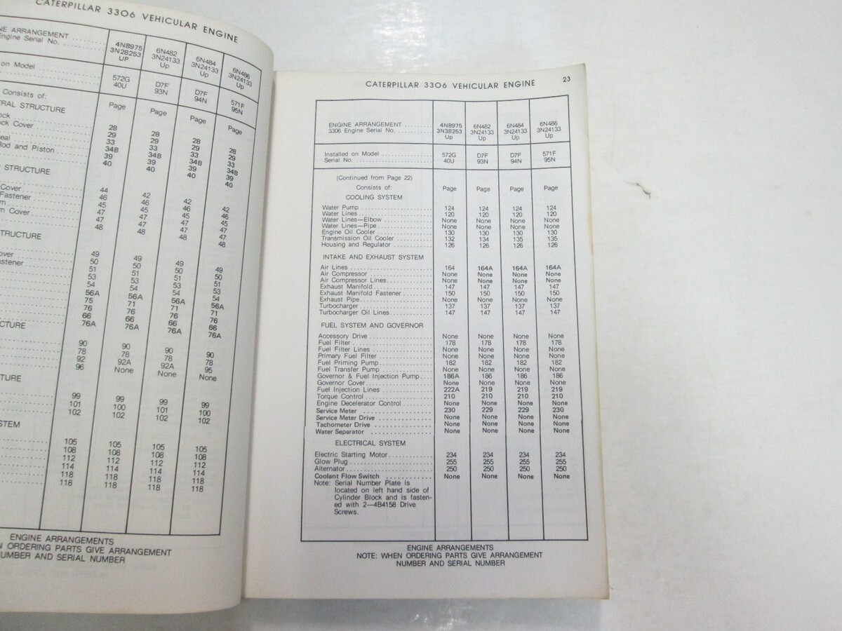 Caterpillar 3306 Manuale Parti Motore Veicolare 3N24133-UP DANNI D'ACQUA 1976