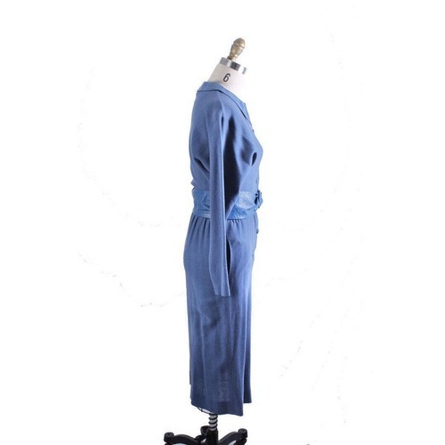 VTG Emanuel London Blue Wool Dress Leather and 46 similar items