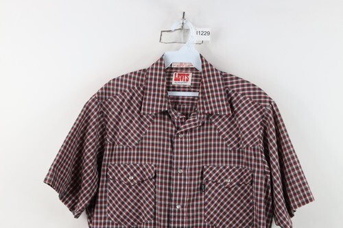 Vtg 80s 90s Levis Cowboy Mens Large Western Snap Button Short Sleeve Shirt Plaid