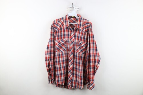 Vintage 70s Streetwear Mens XL Distressed Western Rodeo Snap Button Shirt Plaid