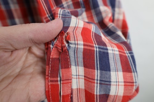 Holes, ripped both arms. Holes, thread bare spots front. Collar, cuffs discolored. Loose thread collar. Color faded. Pilling