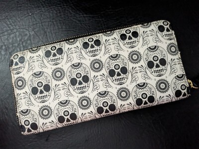 Portefeuille Zippé Loungefly Tête De Mort Sucrée Noir Et Blanc 8 X 4 Pouces