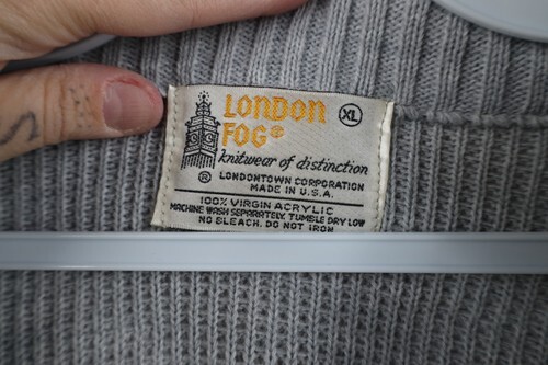 Collar, shoulders, cuffs discolored. Tag partially unstitched. Color faded. Pilling. Has musty scent. Made in USA